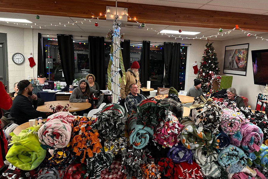 On Monday night, we brought a little Christmas serving special blankets made by Ridgeline Falcons students. Each got a stuffed animal donated by PetSmart. We love you both! They were happy to receive stockings, coats, candy, socks, gloves, hot cocoa, treats, holiday music, and more!
